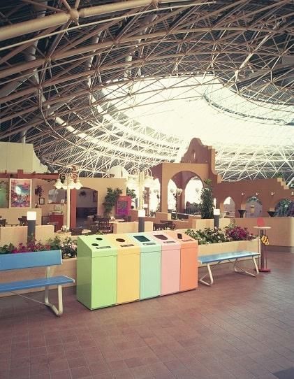 上部の曲線と直線が柔らかさを演出する屋内向けの分別屑入れです。